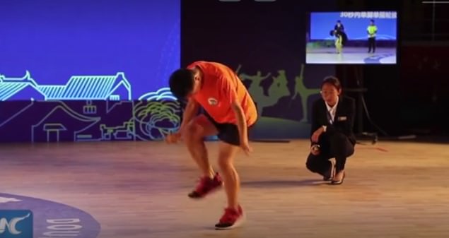 Китайский спортсмен Цэнь Сяолинь побил рекорд Гиннесса по прыжкам со скакалкой.