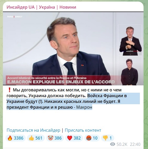 «Каким далёким кажется июнь 2022 года, когда Макрон предложил «не унижать Россию». Президент Франции теперь хочет войти в число сильнейших союзников Украины, готовых предоставить Киеву неограниченную поддержку, чтобы обеспечить поражение Москвы», — отмечает Le Monde.
