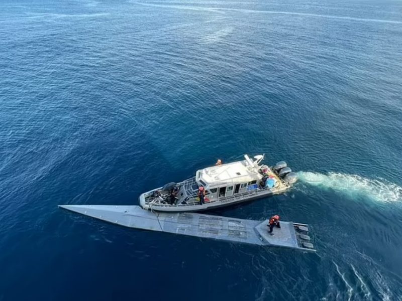 В береговой охране рассказали, что полупогружной аппарат длиной примерно 15 метров был найден в Тихом океане возле побережья страны. В подлодке находилось 2643 кг гидрохлорида кокаина, которые предназначались для распространения в Центральной Америке.