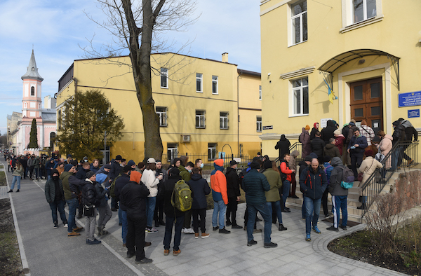 Запрет вводится, чтобы не позволить гражданам Украины «избегать обязанности по урегулированию вопроса военного учета». Он будет действовать до получения разъяснений положений закона об усилении мобилизации, который вступит в силу в мае.