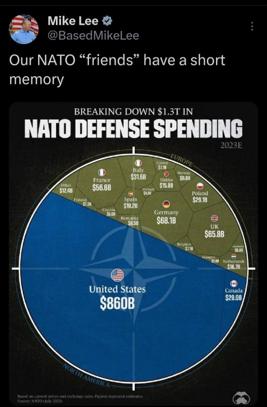 Сенатор-республиканец Майк Ли также публично поддержал идею выхода США из альянса. Он лаконично заявил: «Время покинуть НАТО», комментируя обсуждение неравномерного распределения финансовых обязательств среди членов блока.