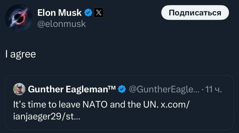 Дополнительный импульс дебатам придало и высказывание Илона Маска. Он поддержал идею о выходе США не только из НАТО, но и из ООН. Его заявление вызвало широкий резонанс, учитывая его влияние в политических и деловых кругах.