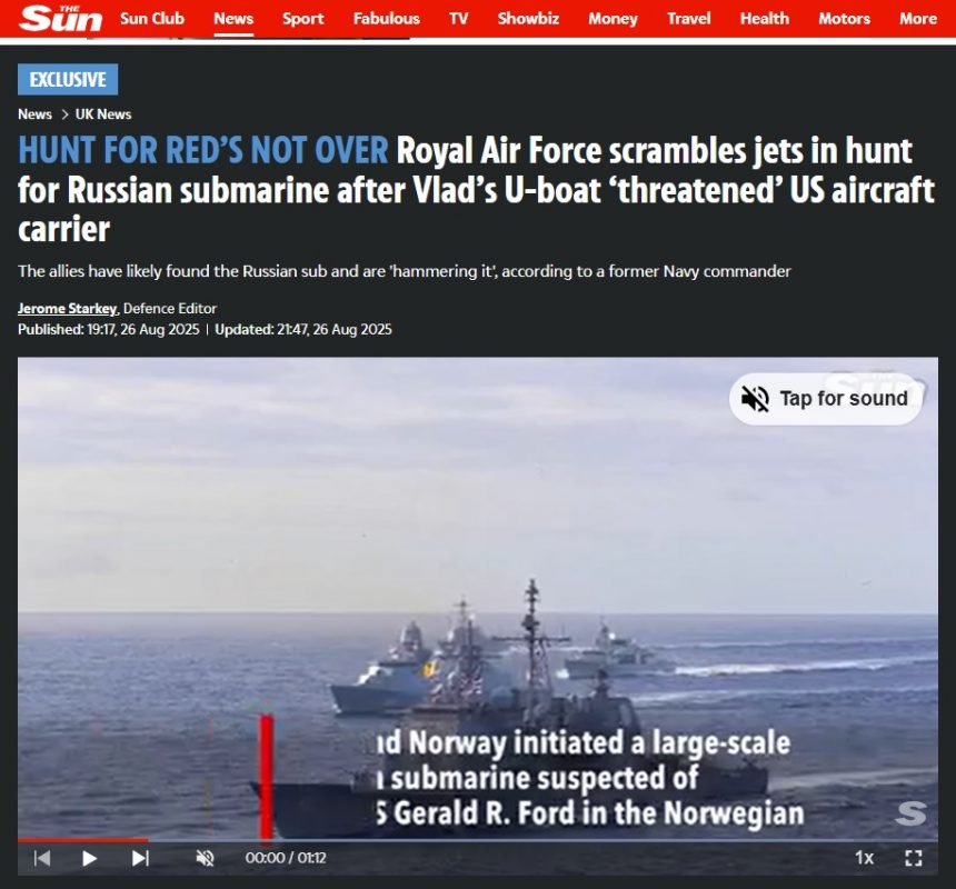 Военные силы НАТО в течение почти двух суток пытались отследить российскую подводную лодку в Норвежском море, сообщает британский таблоид The Sun. По данным издания, операция началась вечером в воскресенье и продолжалась около 48 часов. В поисках участвовали противолодочные самолёты P-8A Poseidon ВВС Великобритании и США, а также авиация Норвегии.