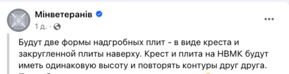 Выбор намогильных сооружений особо не велик: крест или плиты с округлением в верхней части, уточнили в министерстве ветеранов Украины.