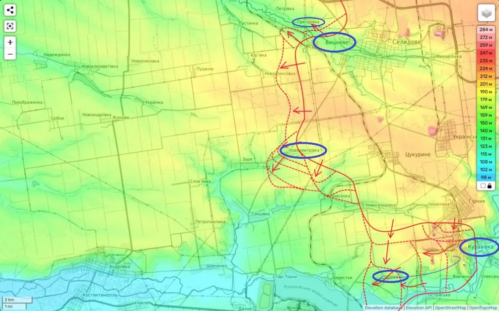 Постоянное давление на украинские опорные пункты указывает на то, что линия обороны может скоро рухнуть. Это может привести не только к быстрому окружению Курахово, но и к более серьезным последствиям — например, к выходу к реке Волчья в районе Андреевки и дальнейшему наступлению в западном направлении.