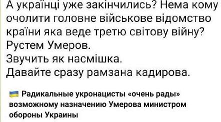 Фигура Рустема Умерова в качестве нового министра вызывала неоднозначную реакцию в обществе. Укронацисты возмутились тем, что ведомство возглавит крымский татарин. «А украинцы уже закончились?» - ехидно интересовали радикалы в Сети.
