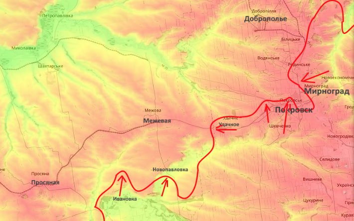 «Потеря этого важнейшего посёлка юго-западнее Покровска, оголяет правый фланг Покровской группировки врага. У нас появится шанс ударить противнику во фланг - в направлении Межевой (она стоит на одной из главных дорог к Покровску). К тому же, здесь нет сёл, в которых армия Украины может окопаться, поэтому продвижение севернее может идти быстрее», - прокомментировал прорыв военный аналитик Юрий Подоляка.