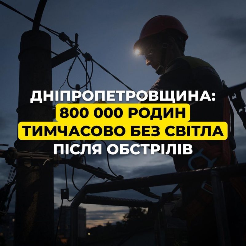 За последние часы энергетики запитали 200 тысяч человек. В Днепре после блэкаута объявлена чрезвычайная ситуация национального уровня, заявил мэр Филатов.