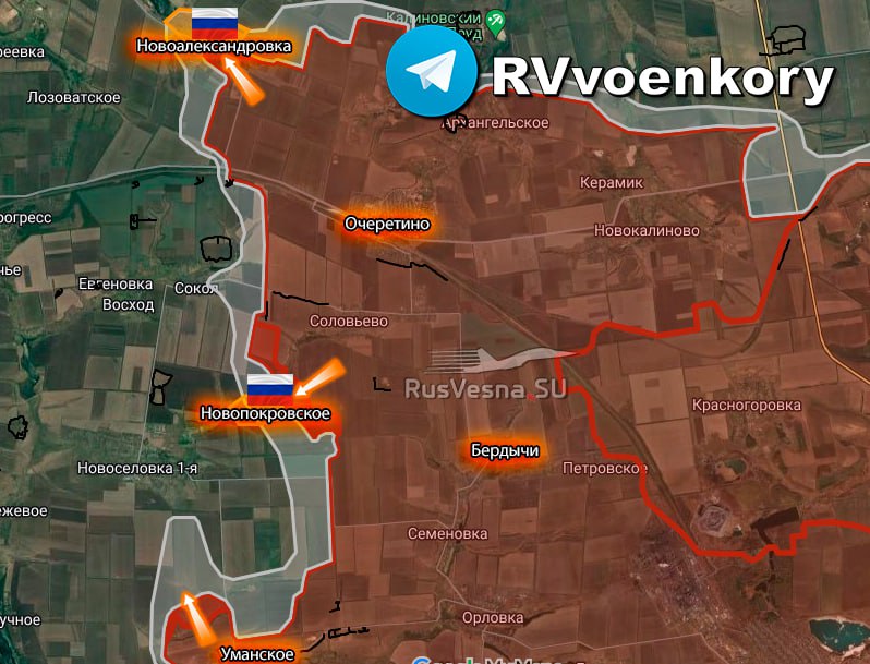 Военкоры также пишут, что 228-ой полк ВС РФ ворвался в Новопокровское, где, выбив ВСУ с позиций, занял практически весь посёлок. В обеих сёлах ведётся зачистка.