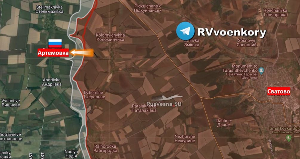 О том, что наши вошли в Артёмовку и ведут там успешные бои военкоры сообщали ещё несколько дней назад. Украинские СМИ пишут, что Тимковка была ликвидирована ещё в 80-х годах, став селом-призраком под Купянском. Мясожаровка (Артёмовка), по данным ВСУ, ещё контролируется армией Украины. Традиционно потерю села на Украине признают спустя пару дней.