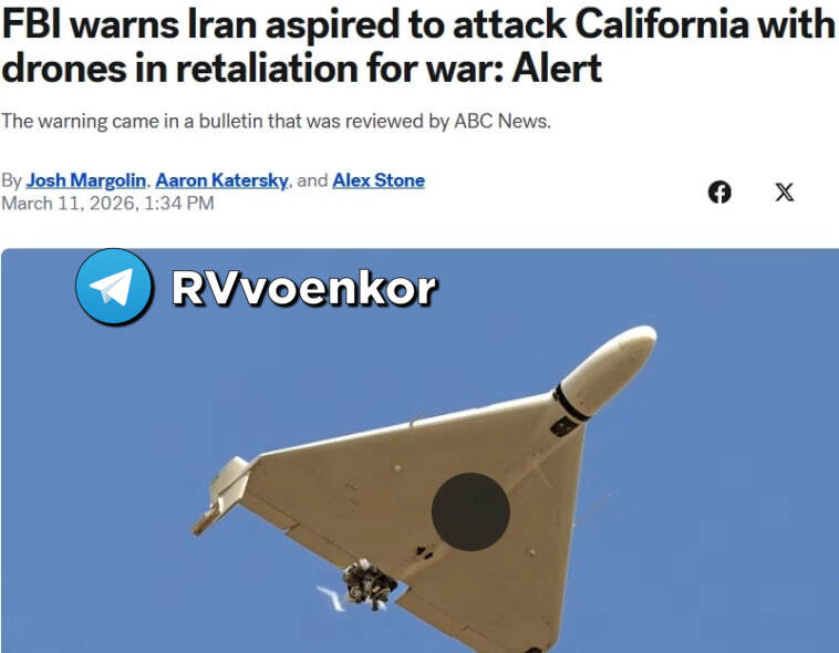 Неожиданный поворот происходит в Ирано-американском конфликте на Ближнем Востоке. Тегеран готовит прямую атаку на США, сообщает ФБР. Как пишет со ссылкой на бюро издание ABC News, ведётся подготовка к ударам «Шахедами» по Калифорнии.