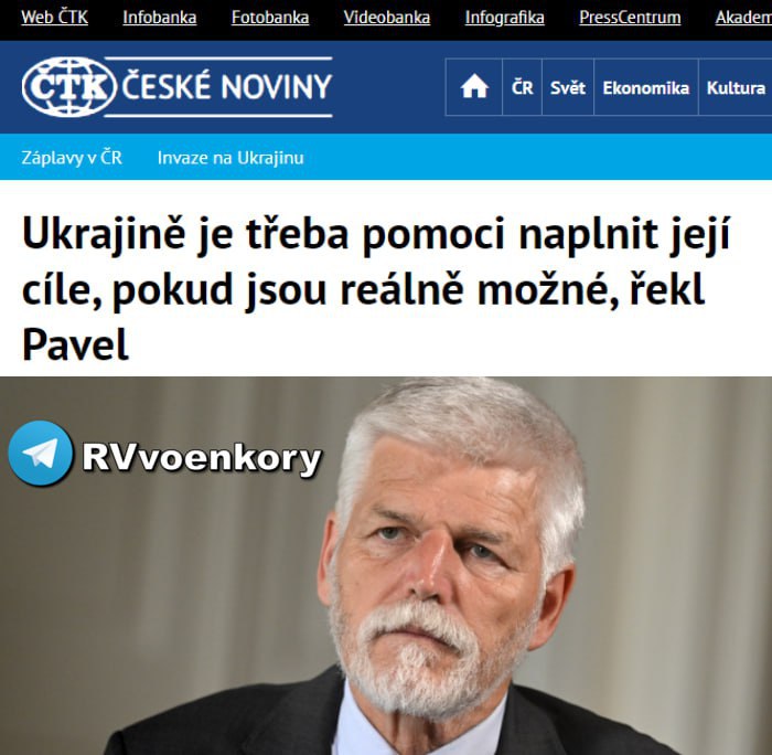 Издание Ceske noviny приводит слова президента Чехии Петра Павла, который назвал опасными «надежды на то, что война завершится чистой победой Украины через несколько недель или месяцев».