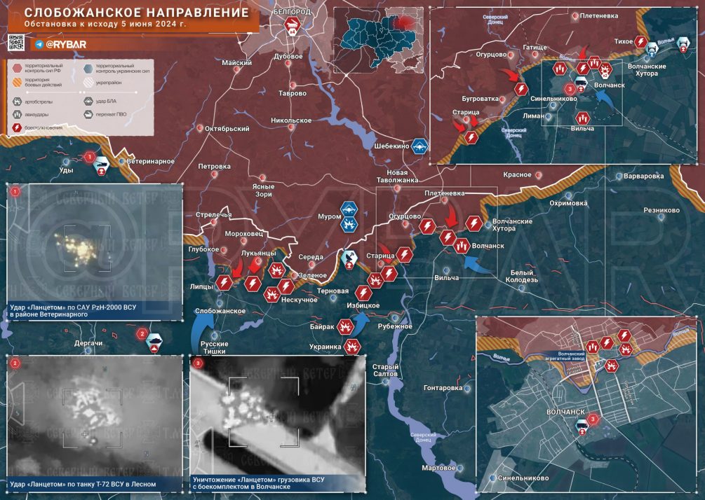 В отличие ВСУ, которые воюют с помощью фейков про разгром полков ВС РФ в районе Волчанска, армия России продолжает реально наступать на севере Харьковской области. Западные партнёры Зеленского продолжают призывать Киев отказаться от части территорий ради мира. Как сообщают СМИ Украины, в ряде населённых пунктов Донбасса объявлена эвакуация. Главное с фронта спецоперации на Украине в сводке за 6 июня.