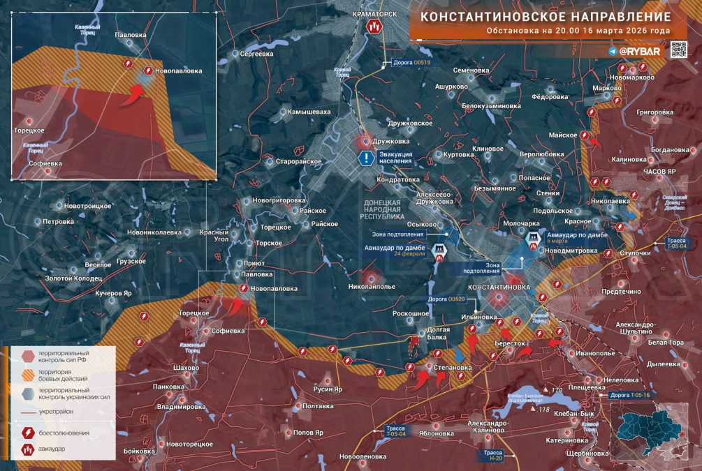 На Константиновском фронте СВО российская армия штурмует окраины города. Главное преимущество украинцев здесь - контроль над высотами.