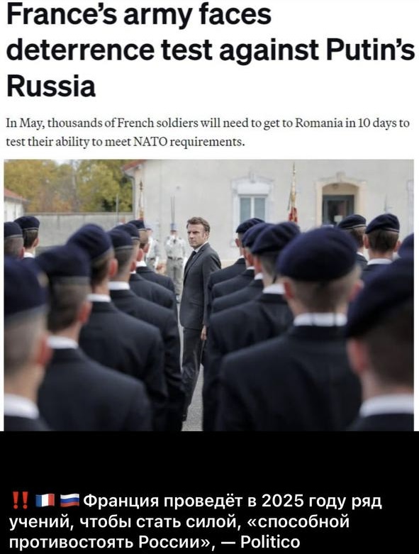 Кроме того, зарубежное издание Politico пишет, что Париж планирует проведение ряда учений в будущем году, чтобы почувствовать себя силой «способной противостоять России».