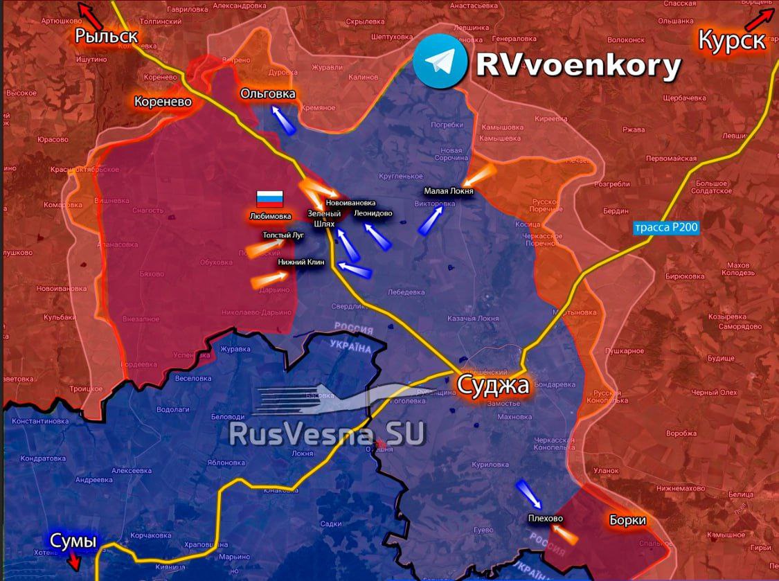 Военный обозреватель Юрий Подоляка сообщает, что, как и ожидалось, с улучшением погоды наши войска возобновили наступление на Курском направлении. Вчера основные события развернулись на трассе Зеленый Шлях — Малая Локня, между Новоивановкой и Викторовкой.