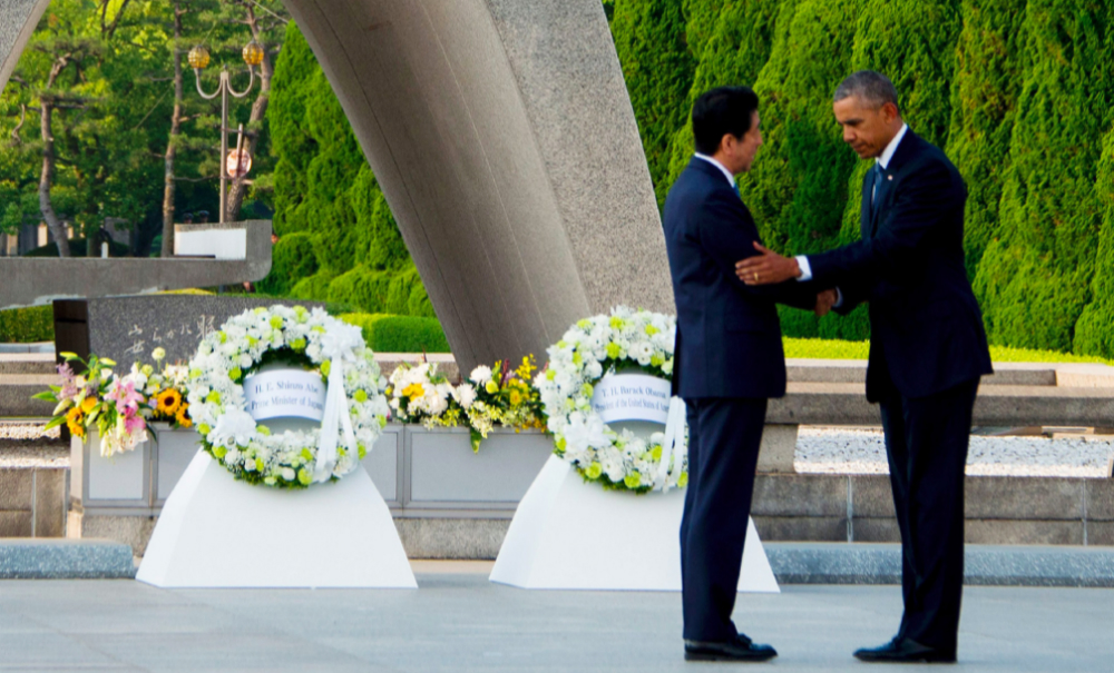 В самой Хиросиме, погрузившейся в ядерный кошмар 6 августа 1945 года, американский президент посетил Мемориальный парк Мира, созданный в память жертв атомной бомбардировки. Вместе с премьер-министром Японии Синдзо Абэ он принял участие в торжественной церемонии и возложил цветы к мемориалу посреди парка.