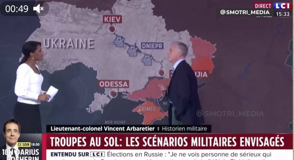 При этом на французском ТВ уже вовсю обсуждают место дислокации французских войск на Украине. Пока рассматривается два сценария: размещение вдоль Днепра или вдоль границы Белоруссии 20 тысяч военных, собранных в мобильные бригады.