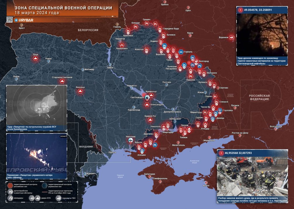 В ответ ВКС России наносят удары не только по тылам ВСУ в Харьковской и Сумской области, но и в центральной части Украины. Так, в Хмельницкой области ликвидирована группа инженеров и военных из Польши. Массированным ударом ВКС России разбомбили авиазавод в Луцке и нефтебазу в Кировоградской области.