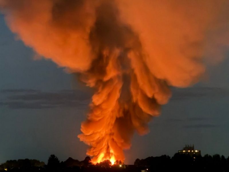 От детонации, пишет SA, трясет дома по всему городу, поднялся густой шлейф дыма. Вся промышленная зона, окружающая поврежденный склад, эвакуируется.