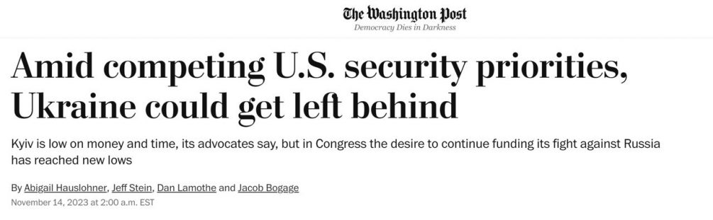 Война в Израиле и миграционный кризис на южной границе с Мексикой только усилили эти тенденции и могут стать «похоронным звоном для продолжающейся американской помощи» Украине.
