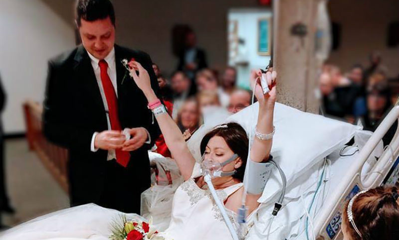 Жительница штата Коннектикут Хезер Линдси стала женой своего любимого человека за 18 часов до смерти. Год назад у женщины диагностировали рак груди, и в течение долгих месяцев она боролась со страшной болезнью. Когда стало понятно, что врачи уже не смогут помочь Хезер, она решила в последние дни жизни всё-таки надеть белое платье. Предложение от возлюбленного она получила еще до того, как узнала о диагнозе. Мужчина был рядом с невестой во время лечения и не потерял решимости жениться на ней.