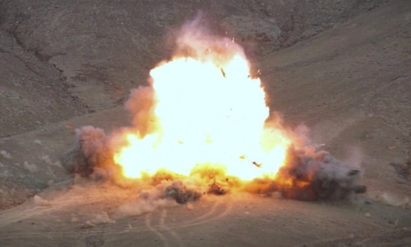 В конце ролика мальчик Иса Дэйр нажимает на кнопку ручного детонатора, чтобы взорвать находящуюся позади него машину.