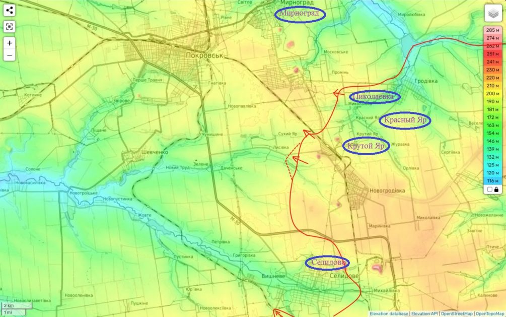 На пути к Мирнограду российские войска освободили Николаевку, Красный Яр и Крутой Яр. Это подтверждает аналитический ресурс противника DeepState.