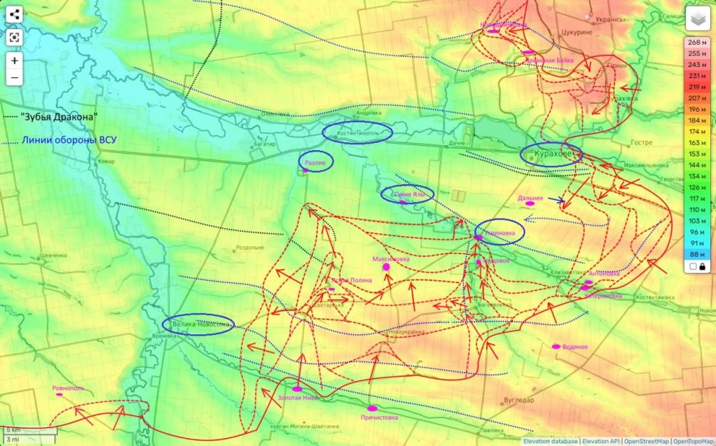 Одной из основных задач в этом районе является захват села и контроль над важным узлом дорог, что позволит обеспечить логистическую поддержку для последующих операций. Вчера также велись активные бои за село Константинопольское.