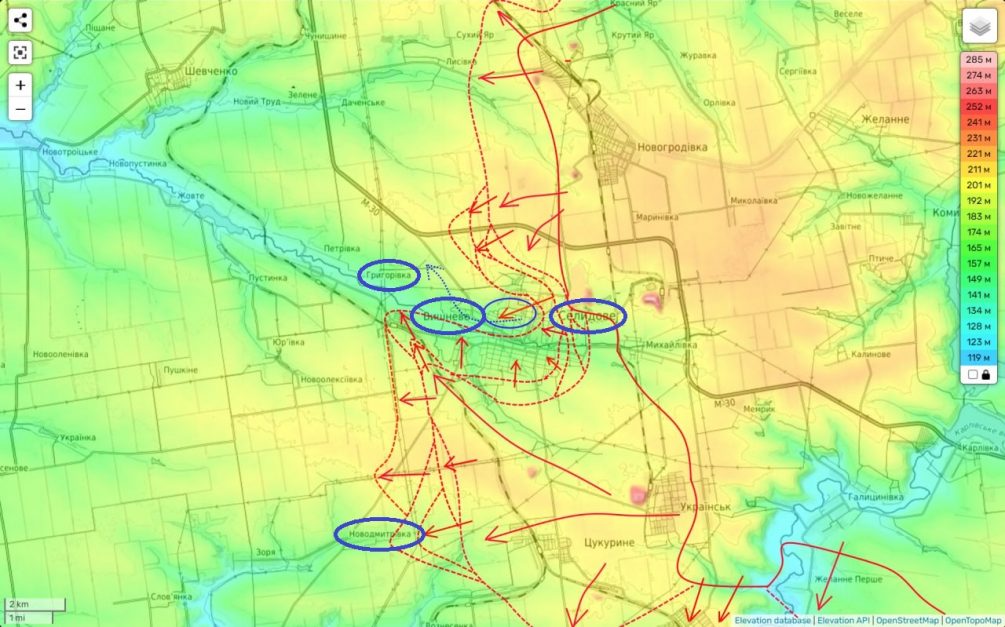 Военный обозреватель Юрий Подоляка заявляет, что вчера наши войска успешно выбили противника из упорно защищаемого высотного микрорайона. Хотя в этом районе всё ещё сохраняется очаговое сопротивление, цельной линии обороны к вечеру уже не было. Под давлением наших атак враг был сломлен как на юге, так и на западе, и к утру под его контролем остались только самые западные окраины Селидово. В остальной части города идет активная зачистка, которая может занять несколько дней из-за наличия множества очагов сопротивления.