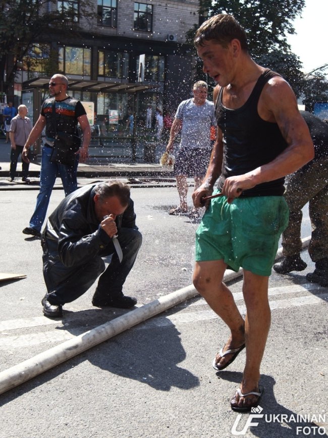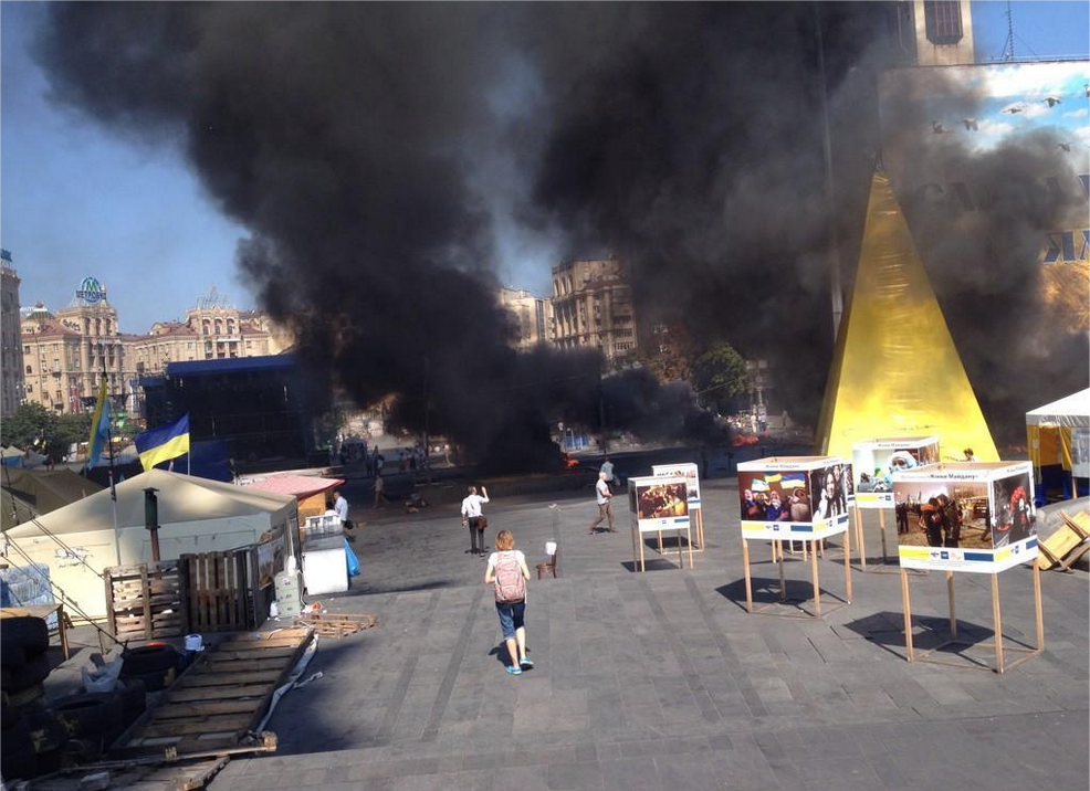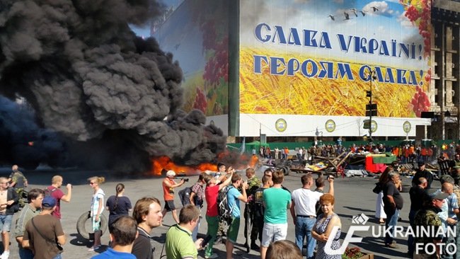Так и сцепились переодетые милиционерами титушки и ФСБшники с переодетыми майдановцами титушками и ФСБшниками. Центр города заволок дым. В соцсетях пишут, что горят не только палатки и покрышки, но и собранные для украинских военных медикаменты.