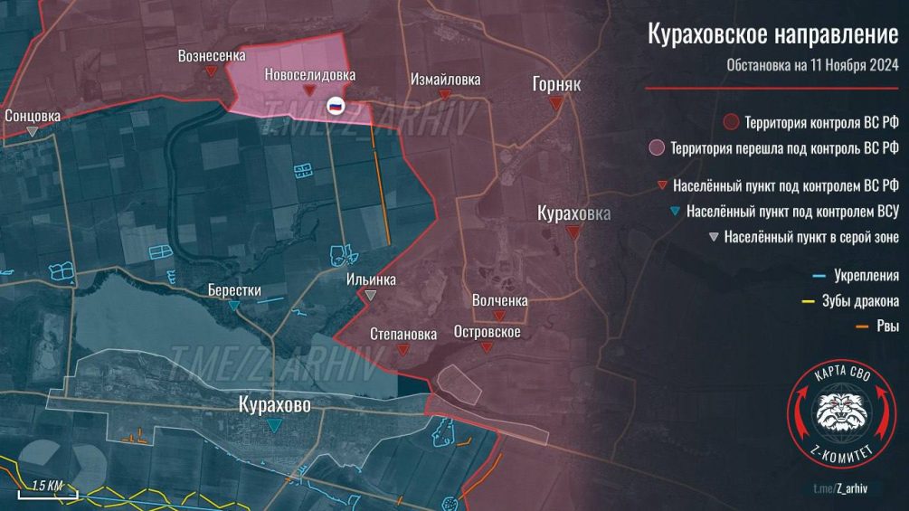 В то же время на восточном фланге продолжается активное наступление российских войск на Курахово со стороны Максимовки. Бои переместились к окраинам города, где противостояние между российскими силами и украинскими войсками становится все более интенсивным. Российские войска также провели атаку в районе балки Долгой, пытаясь обойти основные оборонительные позиции ВСУ, что создает дополнительное давление на защитников города.