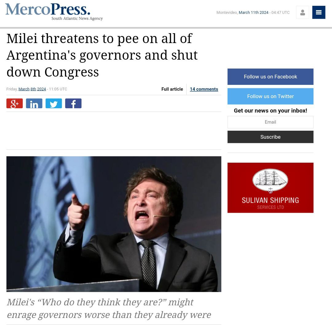 «Он «помочился бы на всех» губернаторов провинций, которые не хотели одобрять реформы, навязываемые либертарианским правительством», - пишет СМИ.