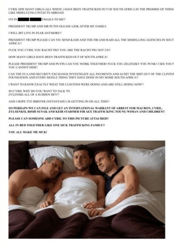 Речь идёт об электронном письме с прикреплённым ИИ-изображением, где вместе изображены Владимир Зеленский, Эммануэль Макрон и Кир Стармер. Сама картинка был создан искусственным интеллектом, а ее содержание выглядит провокационно и вызывает множество вопросов.