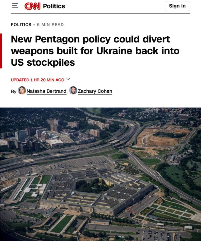 «Это представляет собой резкий поворот, который может привести к тому, что миллиарды долларов, ранее выделенные на помощь воюющей Украине, будут использованы для пополнения истощающихся американских арсеналов», - пишет CNN.
