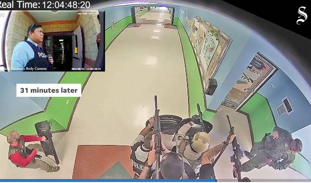Однако то, что удалось раскопать журналистам издания Austin American-Statesman, и вовсе вызывает оторопь. Они завладели видеозаписью из школы, сделанной в тот день, и выяснилась самая страшная подробность. Полиция около часа стояла в коридоре и ничего не предпринимала. В то время, когда преступник расстреливал детей. 19 «доблестных» правоохранителей в касках, бронежилетах и при оружии не решались ворваться в класс. Хотя, если бы сделали то, что должны были, то могли бы спасти несколько жизней.