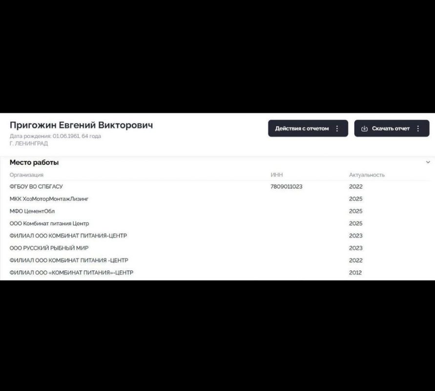 Кроме того, ряд ТГ-каналов, в частности, «Срочно, сейчас!» опубликовал данные сервиса https://sherlokbot.com/ : зарплатную ведомость, по которой Евгений Викторович до сих пор получает заработную плату, как минимум, в трех российских компаниях.