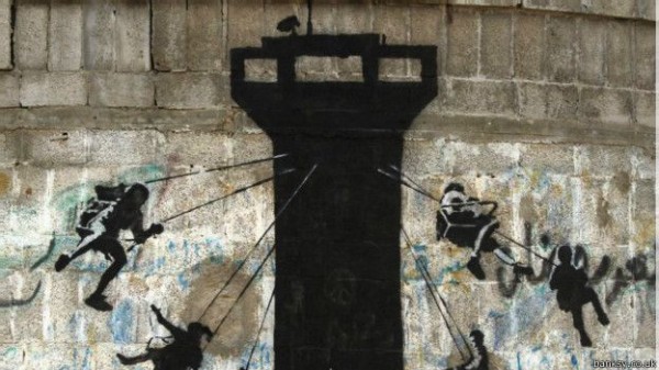 Знаменитый уличный художник, чье имя до сих пор остается неизвестным, тайно приезжал в сектор Газа и оставил там три своих рисунка.