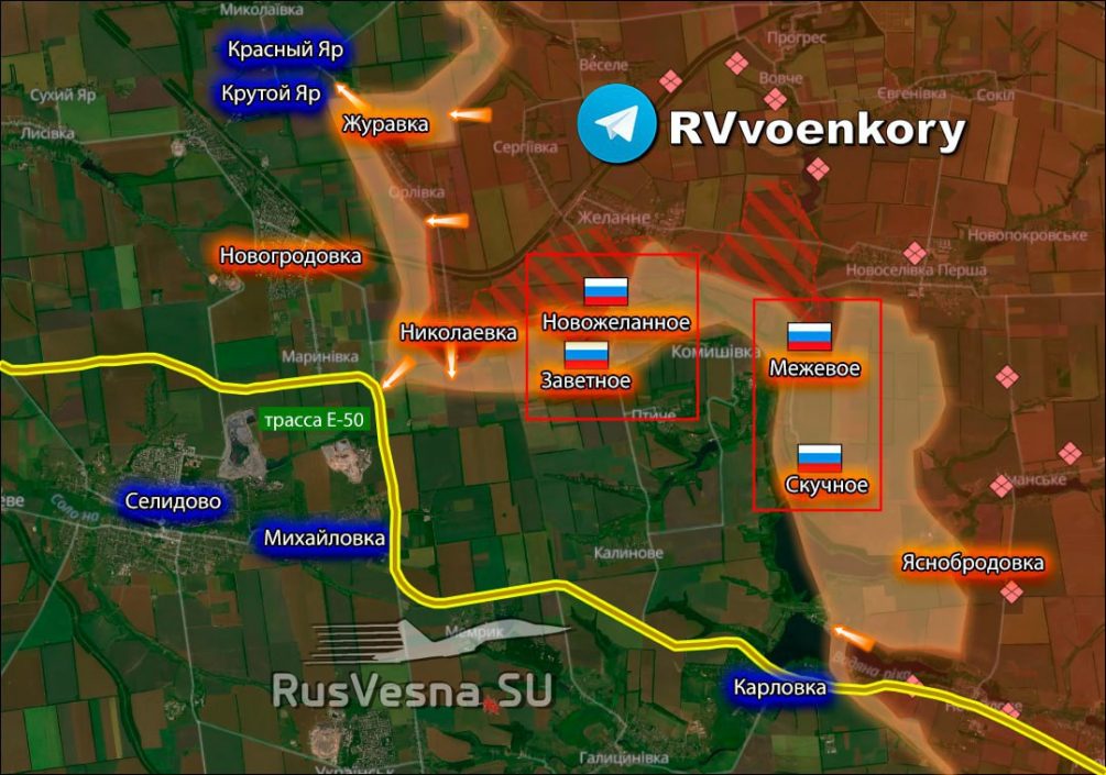 Украинцы признают, что Россия заняла Межевое, Заветное, Новожеланное и Скучное. Как пишет военкор Юрий Котенок, отмечается отвод сил противника из н.п. Камышевка. Армия Украины бежит со своих позиций. Военный обозреватель Юрий Подоляка предрекает ВСУ полный крах.