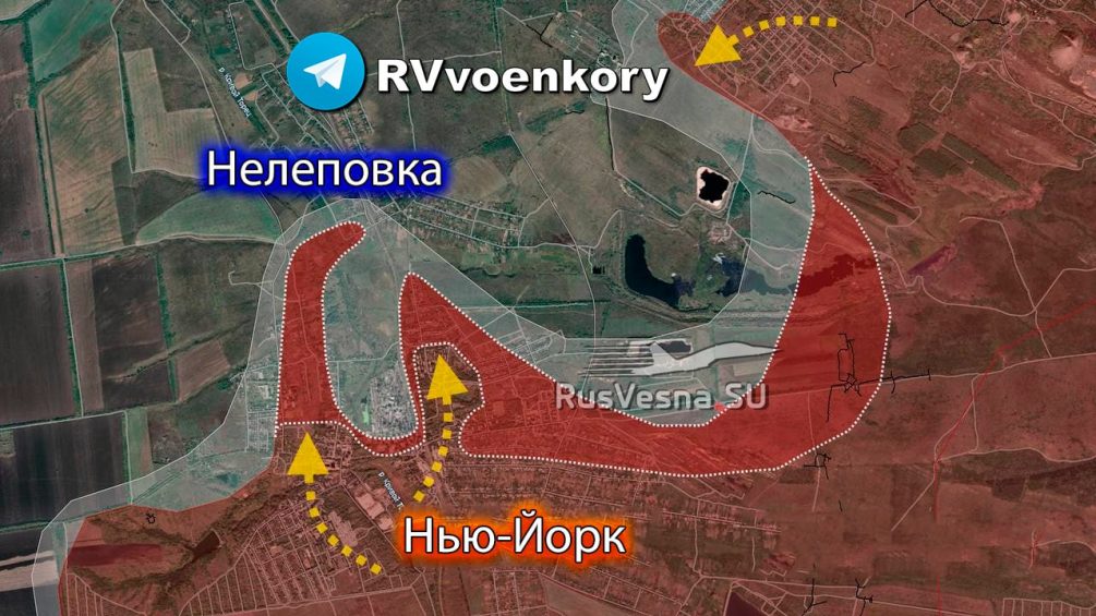 Армия России взяла Нью-Йорк и посёлок Нелеповка. Как сообщает Телеграм-канал «Военкоры русской весны», мощный прорыв группировки войск «Центр» не прекращается.