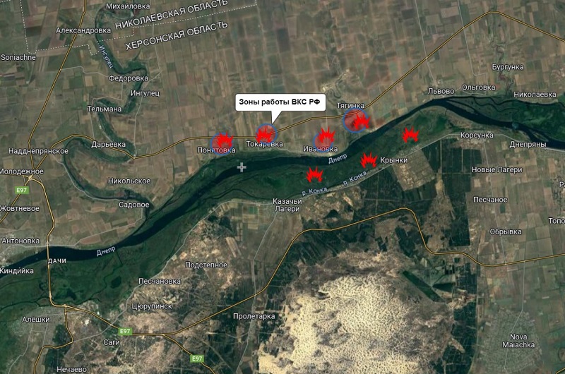 Вдобавок к непогоде по украинцам постоянно бьют из артиллерии и бомбят при помощи БПЛА, в том числе на правом берегу Днепра. Так, десантники артиллерийского соединения нанесли удары из 152-мм гаубиц 2А36 «Гиацинт-Б» по выявленным разведкой местам размещения личного состава ВСУ на правобережье.