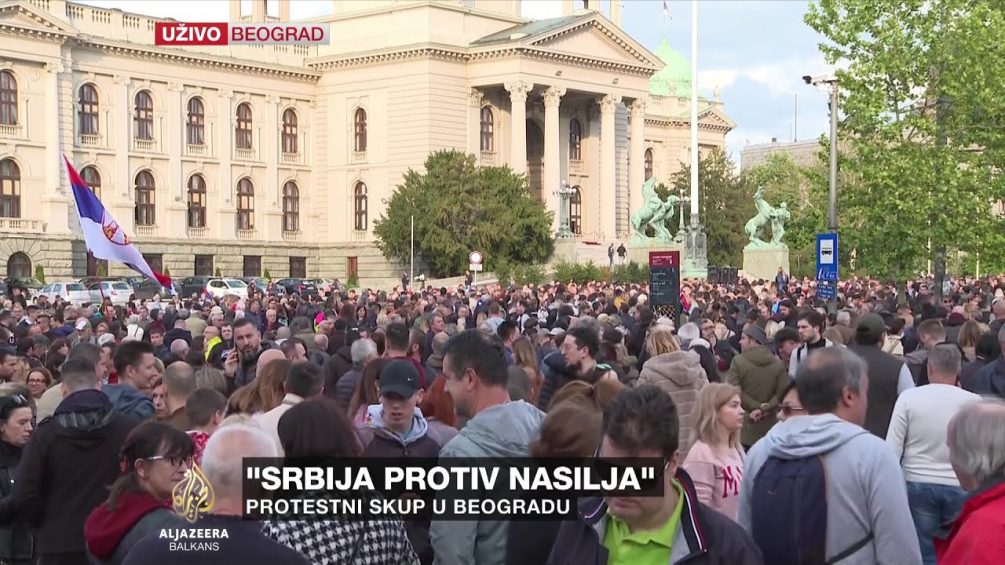 Для страны, со времен войны в Косово, успевшей отвыкнуть от подобных трагедий, случившееся стало настоящим шоком. Власти во главе с президентом Вучичем пытались реагировать на случившееся: посыпались отставки чиновников, а правительство объявило кампанию по добровольной сдаче властям огнестрельного оружия. Граждан всё это не убедило – Белград впервые со времен «бульдорезной революции» 2001 года, свергшей Слободана Милошивеча, увидел по-настощяму массовые и регулярные политические протестные митинги под лозунгом «Сербия против насилия». Помимо честного разбирательства в трагедиях и наказания виновных, митингующие довольно быстро начали требовать отставки правительства и самого Вучича. Сербский президент и его Сербская прогрессивная партия (СНС) правят страной с 2012 года. Вучич сначала покинул пост лидера СНС, а когда это не успокоило общество – объявил досрочные парламентские выборы. Причем пообещал, что в случае поражения СНС сложит и президентские полномочия.