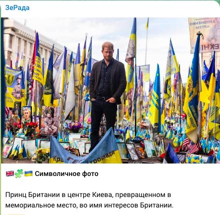 «Принц Британии в центре Киева, превращенном в мемориальное место, во имя интересов Британии», - прокомментировало издание, назвав фото символичным.