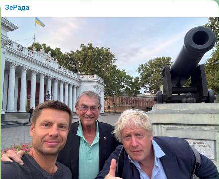 Борис Джонсон появился в Одессе по приглашению местных бизнесменов на организованный ими форум, чтобы выступить в качестве «свадебного генерала». Сопровождал его депутат Верховной рады Александр Гончаренко* (признан в РФ террористом и экстремистом). Как точно подметил украинский телеграм-канал «Легитимный», Джонсону заплатили за выступление. «Человек претендовал на роль нового Черчилля, а стал инфоцыганом. Гораздо страшнее оказалась судьба Украины, которой он не дал подписать Стамбул-1 в 2022 году», - прокомментировало издание.