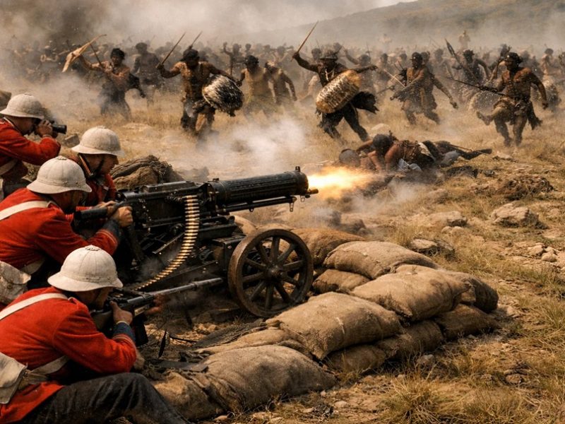 P.S. Касательно зулусов, которых упомянул Александр Харченко. В конце XIX века англичане активно захватывали южную часть Африки, где столкнулись с воинственными и многочисленными зулусами. Однако колонизаторы с легкостью одержали верх. Никакая самоотверженность и готовность стоять до конца африканцам не помогла – они столкнулись с новейшим оружием тех лет, пулеметом Хайрема Максима. Британский писатель Хилэр Бэллок по этому поводу отметился циничным двустишием:
