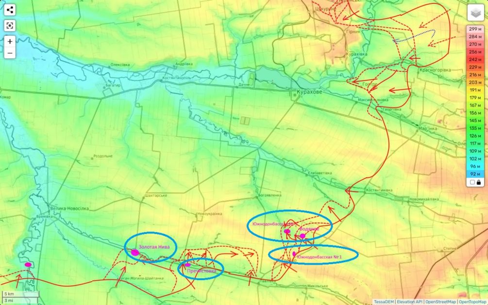 Кроме того, продолжается продвижение на флангах, российские войска практически окружили город, как только это произойдет двухтысячный гарнизон ВСУ (72 бригада) окажется отрезан от путей снабжения.