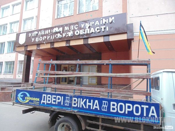 В Луцке (Волынская обл.) самооборона Майдана приступила к ремонту здания УМВД, которое она же взяла штурмом в феврале этого года.