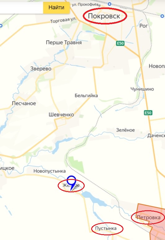 Южнее российские войска продолжают активное наступление в сторону Пустынки с направлений Григоровки и Юрьевки. Бои также отмечены к западу от Новоалексеевки, где наши войска окончательно выбили противника с территории садов и окрестных лесополос. После освобождения Пустынки и закрепления на достигнутых рубежах в районе Юрьевки российские войска смогут развернуть наступление на Пушкино и трассу Т-05-15. Позже наши подразделения были замечены уже в центральной части Желтого, находясь более чем в трех километрах к северо-западу от Петровки. В настоящее время идет активная борьба за контроль над центром населенного пункта, но пока неясно, каким образом штурмовики РФ продвигаются — через лесополосы от Петровки или же со стороны Пустынки.