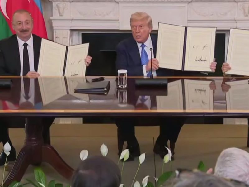 Президент США торжественно объявил о завершении 35-летнего конфликта между двумя странами: «Армения и Азербайджан воевали, теперь они друзья и будут ими надолго».