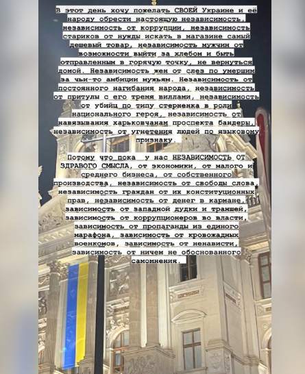 В день независимости одесситка пожелала своей Украине обрести настоящую независимость.